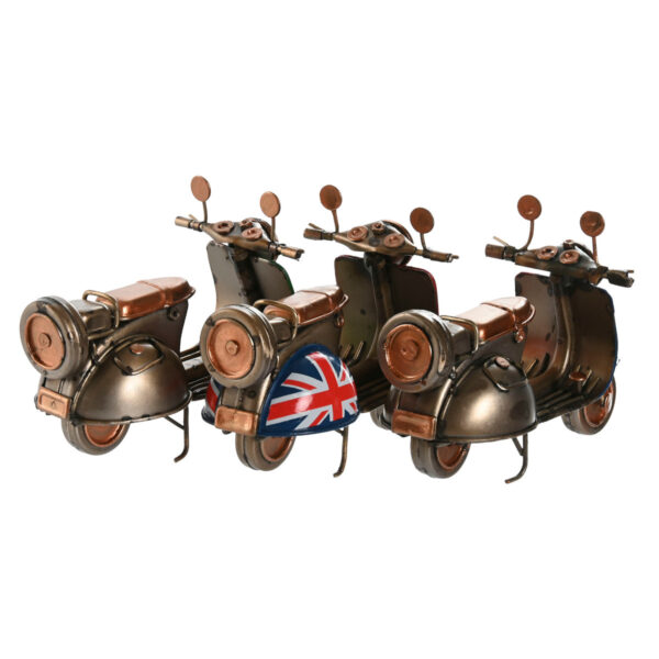 Modellino Vespa in metallo vintage con bandiere Italia, Francia e UK. Un’idea regalo originale e un oggetto d’arredo retrò perfetto per casa, ufficio o collezione.